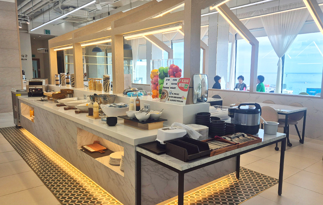 우선, 저는 고속버스 타고 속초로 갔는데! 버스터미널에서 딱 길만 건너면 돼서 완전 좋았습니다! (특히 집 갈때도 정말 편했어요) 심지어 1분정도만 아래로 내려가면 속초해수욕장과 대관람차가 바로 있어서, 뷰도 좋고 볼거리 놀거리가 가득했습니다 : ) 밤에 대관람차 불 들어오는데, 방에서도 잘 보여요! 내부는 리모델링해서 그런지 완전 깔끔하고 쾌적했고, 특히 화장실이 정말 깔끔해서 사용하기 좋았습니다~~ 침대도 거의 3명이 누워도 될만큼 넓고 폭신했어요. 9층 레스토랑에서 먹는 조식도 정말 맛있고, 오션뷰까지 끝내줬답니당~ ! 사장님도 정말 친절하세요 굿!